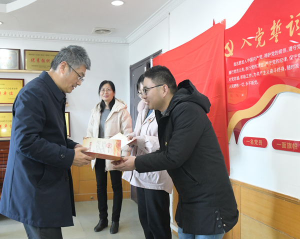 最后,周祥带领两位党员重温入党誓词并赠送“政治生日”礼物。两位党员分享自身成长经历,表示要继续不忘初心使命,坚定理想信念,发挥党员先锋模范作用,自觉接受党员和群众的监督,努力克服自身缺点,求是创新,不断提高自己的业务素养和工作能力,全心全意为师生服务。(文/吴蓓 图/胡佳 审/周祥)