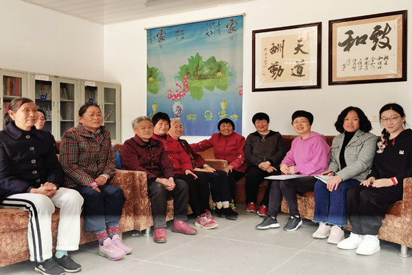 下午,司集文化站站长张玉华带领一行人在司集乡参访了89岁的胡吉英老人,她与李正凤现场为师生演唱了当年(1955年3月)去北京中南海怀仁堂为毛主席、刘少奇、周恩来、朱德等党和国家领导人演唱的巢湖民歌《姑嫂对花》,介绍了司集一带的劳动号子、山歌等,并且现场教授师生数板山歌的传统唱法。