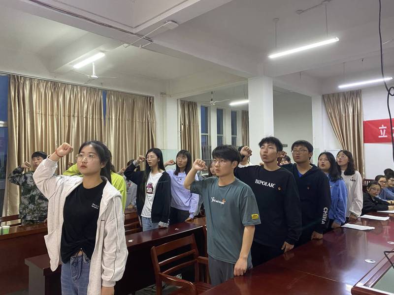 为加强工商管理学院共青团队伍建设,增强新发展团员的进取意识、责任意识、担当意识,工商管理学院于4月28日晚在博学楼二楼会议室举行了2021年新发展团员入团仪式。工商管理学院学院党委书记柳洪琼、院长罗发海、党委副书记黄春芳、副院长陶有田、团总支副书记杨阳、辅导员刘国出席,部分学生干部、学生代表以及全体新团员参加。本次活动由团总支书记金晶主持。
