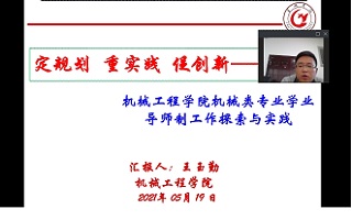 活动伊始,胡传双对活动目的、意义、主题及我校学业导师工作开展情况作了简要说明。随后,化材学院李雷老师、经法学院王小骄副教授、机械学院王玉勤副教授、艺术学院田世彬副教授、文教学院副院长李曙光和电子学院副院长叶松依次作了题为《师友相伴遇见未来》《以提高学生综合素养为要义开展学业指导》《定规划重实践促创新—机械类专业学业导师制工作探索与实践》《以服务为宗旨以项目为驱动以育人为目标—培养新时代“会好好做事”的应用型影视动画人才》《兴“文”化人重“教”育人》和《贯彻专业认证理念落实学业导师制度》的主题发言。他们分别从教师和学院角度介绍了在学业导师工作中的有益经验和典型做法,并重点围绕学业导师制度落实、工作方式方法、取得的成效、存在的问题等开展交流研讨,共享学业导师工作经验。