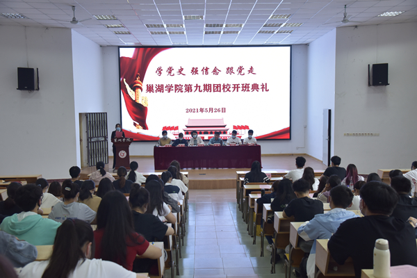 典礼在嘹亮的团歌声中拉开序幕。会上,校团委副书记郭超为第八期团校优秀学员颁发荣誉证书。团委挂职副书记周玉介绍了培训班筹备和分班情况,宣读了团校各班班主任名单和临时团支部书记名单。团委汤艳宣读了《班主任须知》《学员须知》。班主任代表尤逢连老师、第八期团校优秀学员代表张啟蒙同学、第九期学员代表崔琴琴同学分别作了交流发言。团委书记郑玲在总结发言中希望培训班学员,要树牢“四个意识”,坚定“四个自信”,做到“两个维护”,成为习近平新时代中国特色社会主义思想的忠实信仰者、自觉践行者、坚定捍卫者;着力激发团组织活力,树立“一切工作到支部,一切工作靠支部”的理念,持续加强支部规范化建设,全面激发支部组织活力;要推深做实党史学习教育,要带领广大团员青年学党史、悟思想、办实事,引导团员青年深刻感悟党和青年的血脉关系,切实提高听党话、跟党走的思想自觉和行动自觉。