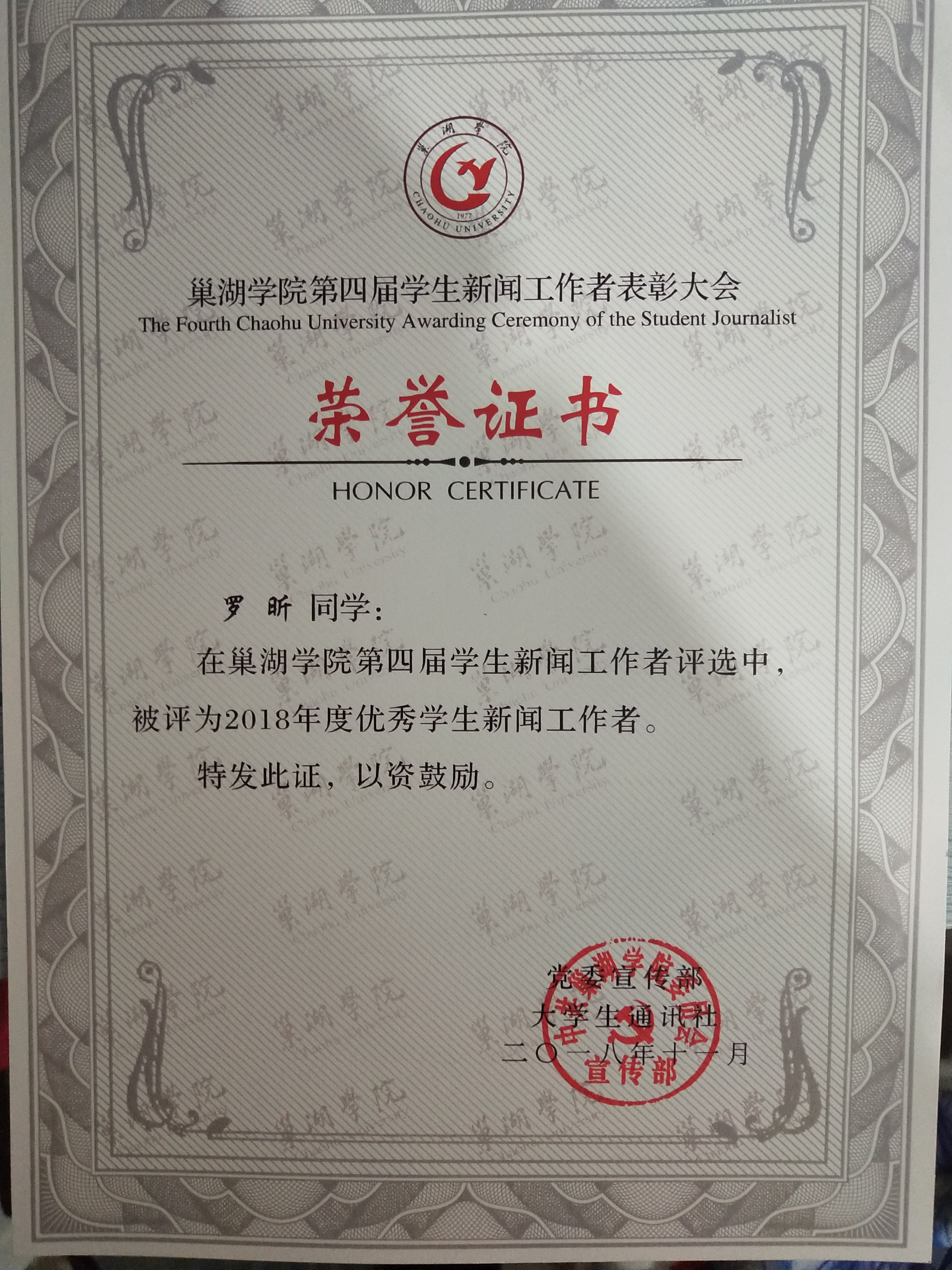 罗昕,女,汉族,1999年9月出生,中共党员,安徽省滁州市来安县人,awc777万象城娱乐官网数学与统计学院2017级应用统计学专业二班学生。在校期间曾任数统学院新媒体工作室主任和辅导员助理,在班级担任团支部书记。曾获共青团网宣工作“优秀网宣员”、awc777万象城娱乐官网优秀学生新闻工作者、校级奖学金,awc777万象城娱乐官网“优秀共青团干部”、“优秀学生干部”等。在暑期大学生志愿者社会实践活动中,获“先进个人”。在今年的中央机关及其直属机构招录公务员考试中,考入国家统计局马鞍山调查队。