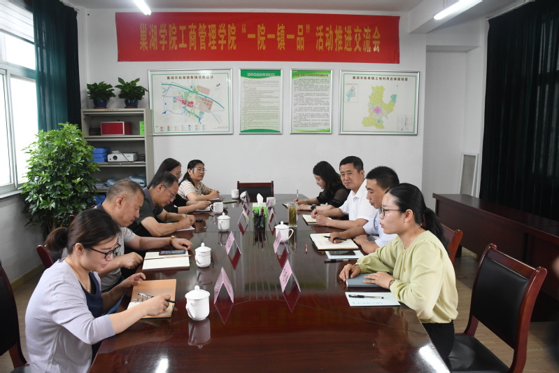 为认真贯彻落实习近平总书记关于实施乡村振兴战略重要指示精神,扎实推进服务环巢湖区域经济社会发展行动计划工作,落细落实“一院一镇一品”志愿服务项目,校长祝家贵率工商管理学院一行于6月16日前往巢湖市柘皋镇举行“一院一镇一品”志愿服务推进座谈会。柘皋镇党委书记谢忠月,巢湖团市委书记黄玉麟等参加了会议。