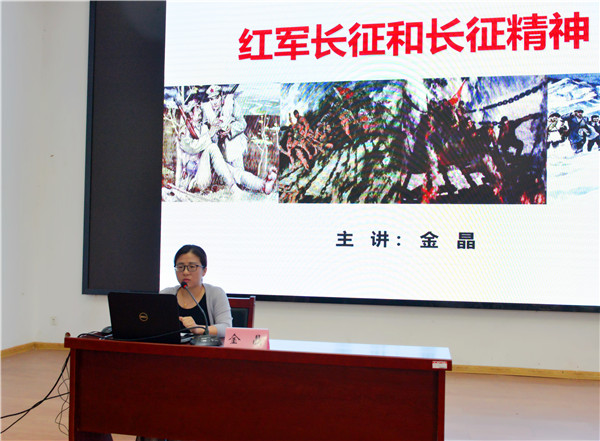 动员会结束后,金晶老师作了以《红军长征和长征精神》为主题的首场报告。她通过详细的史料、生动的例证、独到的解析系统回顾讲述了红军在二万五千余里的征途中发生的血战湘江、遵义会议、爬雪山、过草地等重要战役和事件,并对长征精神的深刻内涵、长征胜利的伟大意义等加以解答。她希望同学们能始终铭记长征精神,缅怀革命先烈,将“长征路”所学投以“大学路”所做,自觉肩负起新时代的历史使命,不断提高政治判断力和执行力,更好传承红色基因、凝聚奋进力量,在实现中华民族伟大复兴中国梦新长征路上续写新篇章、创造新辉煌。