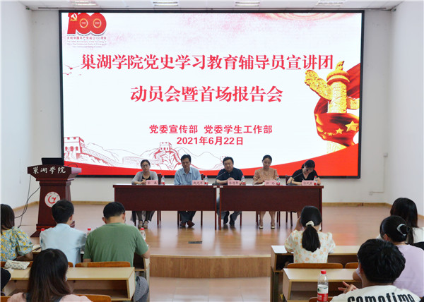 为庆祝中国共产党成立100周年,推进党史学习教育深入开展,积极引导大学生从党史学习中汲取智慧和力量,努力成为堪当中华民族伟大复兴重任的时代新人,6月22日下午,awc777万象城娱乐官网党史学习教育辅导员宣讲团动员会暨首场报告会在求实楼报告厅举行。校党委委员、宣传部部长余洁平、校团委书记郑玲、马克思主义学院副院长赵光军出席会议,动员会由学工部副部长郭凤英主持。工商管理学院及经济与法学学院辅导员、学生代表200余人参加会议。