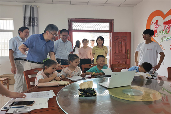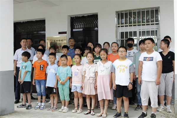 活动最后,阮爱民、向旭升与志愿者们共同为童坛村“汤山爱心学校”揭牌并合影留念。(文/周玉、汪雅 图/张家佳、史阳 审/郭超)