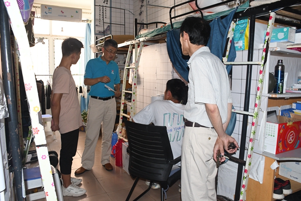 7月22日,校党委副书记阮爱民在办公室、学工部、教务处、后勤处、保卫处等部门负责同志的陪同下走访慰问暑期留校学生,关心学生在校学习和生活情况。