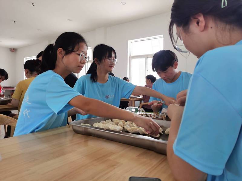 7月21日是活动的最后一天,面对老人的不舍,成员们和老人谈心谈话,共同包饺子,约定第二天为他们送来团队准备的礼物和照片,以作纪念。团队成员们和老人们三五人一桌,围了四五桌,团队成员和老人们的感情在这一捏一挤中慢慢升华,蕴含着的都是志愿者们对老人最诚挚的祝福。