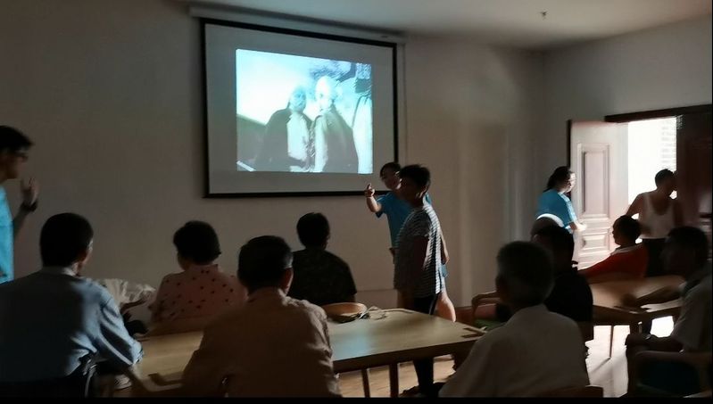为丰富老人精神文化生活,追忆似水年华,志愿者们开展红色影片放映和党史宣传活动。活动第三天,团队成员们打扫放映室,调试放映设备,与老人们一同观看红色电影《上甘岭》,镜头中重温党史,感动中铭记初心。在光影交错中,老人们随着影片同喜同悲,放映结束后,老人们嘱咐团队成员们一定不要忘记曾经的血泪史,不断开拓创新,突破“小我”,实现“大我”,努力奋进为新时代添砖加瓦,在未来把党的历史故事演绎地更加辉煌灿烂。