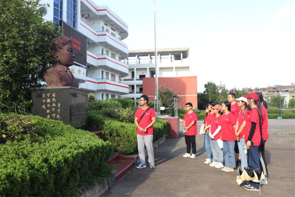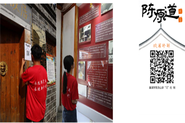陈原道故居坐落巢湖北乡栏杆集镇陈泗湾村,坐北朝南米。其有言曰:“人之求学,贵在乎实而不虚、诚而不伪。”步入陈原道故居,在瞻仰了陈原道烈士铜像后,一副红色革命画卷缓缓呈现。“壮志少年、投身革命、两次坐牢、精神永存四个部分见证了革命烈士生前短暂而又光荣的革命历史。宣讲团的同学们重温了陈原道烈士的光辉历程,学习了革命先辈对党忠诚、坚守初心的政治品格。宣讲团的成员们带来了自己录制的故居宣讲二维码,粘贴在故居内,为陈原道故居发展尽绵薄之力。