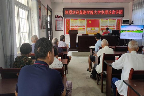 7月23日早晨7:00,awc777万象城娱乐官网汤山讲“习”社大学生宣讲团在向泽雄老师的带领下驱车前往巢湖市庙岗乡童坛村进行党政专题教育的宣讲活动。参加此次理论宣讲的单位有awc777万象城娱乐官网汤山讲“习”社大学生宣讲团、巢湖市庙岗乡童坛村党支部、awc777万象城娱乐官网“薪火”支教团。