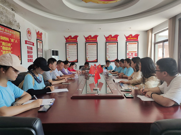 调研团队于7月17日到达黄麓镇合群村村委会,村党委第一书记刘力生热情接待并召开暑期实践调研座谈会,他详细阐述了黄麓镇合群村特色产业的招商引资、振兴方案及民生发展,从戴上贫困帽到脱下贫困帽,合群村在实现“村强民富”的道路上,付诸大量的努力和实际行动。