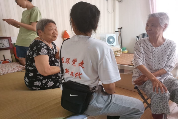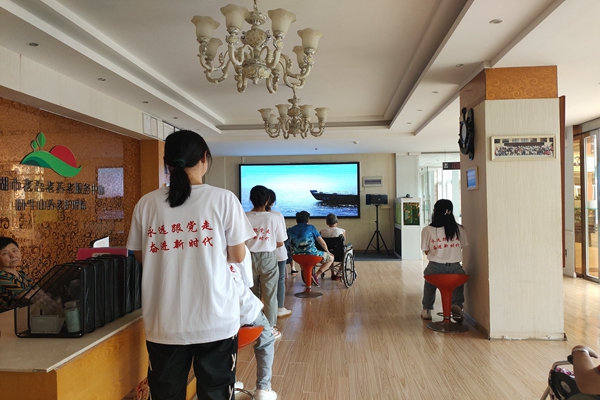 为了更好地让老人感受到陪伴的温暖,聆听他们的革命故事。在7月16日下午15:00,实践团成员来到卧牛山养老院开展了革命采访和观看红色影片活动。活动伊始,志愿者通过聊天的方式了解了敬老院老人对现在生活的满意程度,随着进一步的交流,让志愿者们了解到老人现在很满意养老院的生活以及对党和政府的感恩之情。接着,为了更好的陪伴老人,志愿者陪伴老人观看了爱国主义影片,在此过程中,志愿者热情地与老人共同讨论电影中的剧情,并对党的光辉历史做出了赞赏。最后,在一片欢声笑语中结束了这次活动。本次活动的开展不仅加深了志愿者对老人现状的了解,让当代大学生们在今后的日常生活中更加学会敬老爱老。