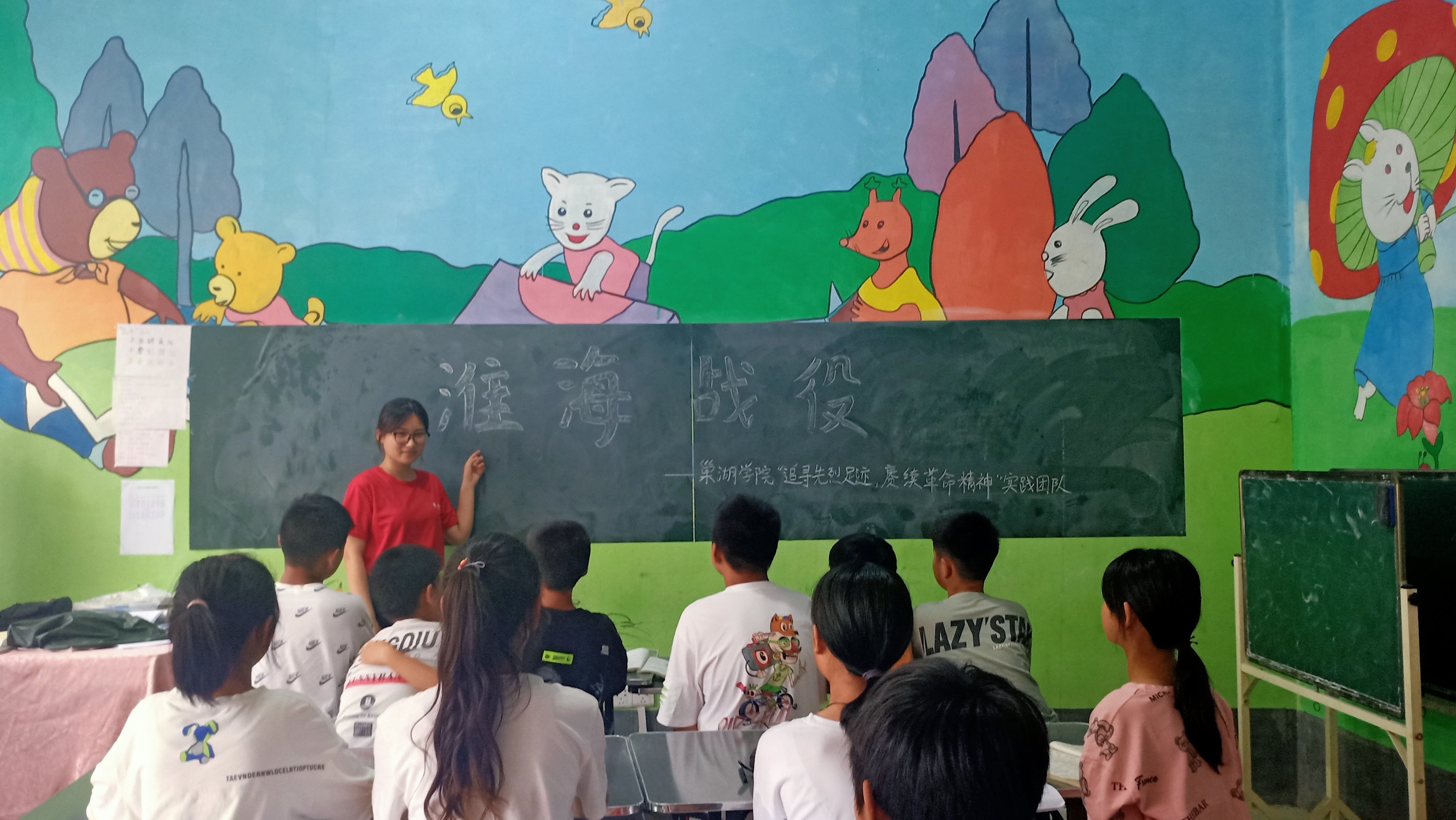 户外实践活动结束后,团队成员们各自分工,整理调研材料,制作淮海战役历史教育短片。与此同时,在前期调研的基础上,部分成员深入当地社区,给小朋友们讲述淮海战役的历史故事。