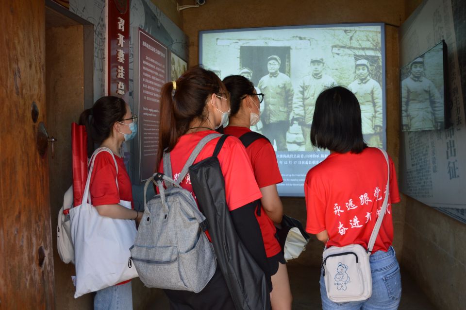 7月24日下午,实践团来到了本次实践调研的最后一站——萧县蔡洼淮海战役总前委旧址,总前委在此召开了唯一一次全委会议,会议对淮海战役的胜利和渡江战役的决策起到至关重要的作用。队员们参观了旧址内作战部、会议室、机要处、总前委居室等多个展室,在展桌前遥想当年五前委运筹帷幄、决胜千里之外的风采。此外,旧址内还有很多后方群众积极支援前线的文字记载、物品陈列,生动体现了陈毅元帅的话:“淮海战役的胜利,是人民群众用小车推出来的!”