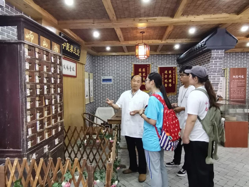7月16日下午,实践团成员出发前往峏山杨中医的发源地柘皋镇峏山村,深入挖掘峏山杨中医的文化内涵。首先来到的是柘皋镇峏山村党群服务中心,与当地负责人对接。在表明此次活动目的后,团队成员与负责人进行沟通,向负责人展示近期团队有关峏山杨中医的相关成果,她对团队成员的工作能力表示肯定。随后负责人帮忙联系了峏山杨中医的传人杨勇先生,由他带领团队成员前往峏山杨中医展馆进行参观。走进展馆,墙壁上的文字清晰的记录了“峏山杨”的历史起源。在参观的同时杨勇先生为团队成员讲解峏山杨中医的发展历程、传奇故事、医学成就等。通过他的解说,团队成员更加深入的了解到峏山杨中医的相关情况。