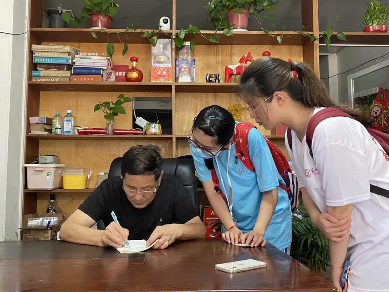 7月19日,实践团成员前往合肥市拜访峏山杨中医第二十四代传承人、峏山杨中医药研究会会长杨晓生先生。交谈过程轻松愉快,团队成员向杨老介绍前期制作的峏山杨中医药文化宣传手册以及峏山杨动画人物,杨老表示,非常支持大学生发挥自己的力量去发扬中医文化,大胆实践、勇于创新,非遗传承靠的就是青年人的力量。杨老从医40余年,始终坚守峏山杨中医文化精髓,积极开展中医药研究,并取得了一系列成就。正如患者赠送杨老的锦旗中所说:传承中医文化,医德医术俱佳。