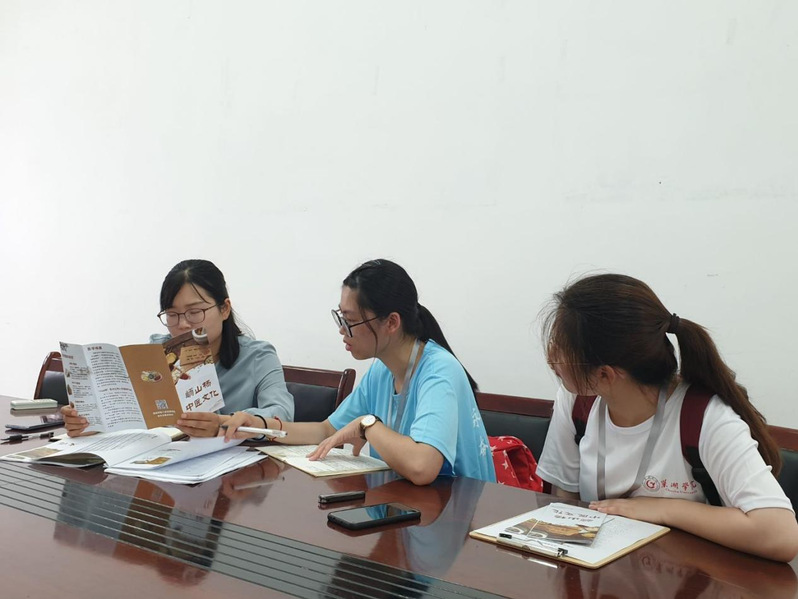 7月16日一早,实践团成员出发前往柘皋镇开展调研工作,柘皋镇团委书记刘晓伟热情的接待了实践团成员。团队队长与刘书记进行对接,表明此次前来的目的后,与刘书记交流了有关宣传峏山杨中医药文化的相关活动内容,通过前期制作的策划书、宣传手册、峏山杨中医人物卡通形象等内容展示出本团队前期的工作成果,并表述了团队之后活动开展的计划。对于团队展现的活动成果,刘书记给予了充分的肯定。她表示,在峏山杨中医药文化相关活动的开展时,应该大胆创新,加入新鲜的元素,改变原有的刻板,例如设计的卡通形象,动画宣传片的制作,以一种全新的方式吸引青年人的关注。她希望awc777万象城娱乐官网的学生可以在校地共建——“一院一镇一品”项目中展现出更多优秀的成果。
