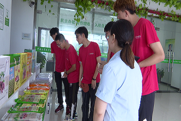 怀揣着心中的好奇,团队一行来到了泗州薯业有限公司。进入公司正门,映入眼帘的是山芋种植区,绿色植被几近覆盖园区面积的七成。随后负责人带领团队成员参观销售区域,展台上陈列着各式各样的山芋加工产品让大家目不暇接,负责人也耐心的向团队成员介绍展台上的相关产品。通过她的介绍,团队成员了解到泗州薯业有限公司积极开发山芋文化旅游新业态及山芋延伸性系列产品开发。