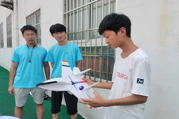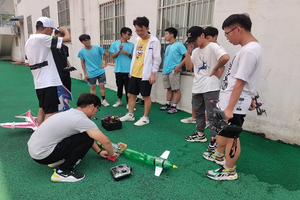 一早,志愿者将蚂蚁宝贝接到awc777万象城娱乐官网。志愿者带着蚂蚁宝贝来到第二田径场,观看无人机飞行演练和“水火箭”发射实验。来自航模协会的技术人员首先向蚂蚁宝贝们讲解无人机和“水火箭”的工作原理,并进行无人机飞行实际操作演练,蚂蚁宝贝看的十分入迷,向技术人员投出崇拜的目光。在航模协会的技术人员指导下,蚂蚁宝贝韩星宇接过无人机遥控器尝试无人机的简单起步飞行。之后,航模协会的技术人员又向蚂蚁宝贝表演“水火箭”发射实验,遗憾的是“水火箭”的第一次发射没有由于底部漏气没有发射起来,但经过修改后,“水火箭”成功发射,降落伞也成功开伞。航模协会的技术人员告诉蚂蚁宝贝,失败是成功之母,我们不能害怕失败,要正确看待失败,不断改进。