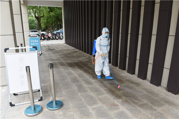 校医院医护人员、安保人员、后勤服务人员、物业消毒人员、辅导员等参演同志迅速上岗,实装操作,进入应急状态。