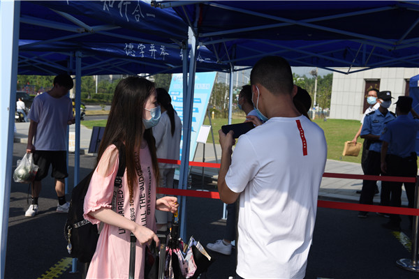 报到现场,返校学生通过测量体温、查验返校许可码、48小时内核酸检测阴性证明、安康码和行程卡绿码等报到流程进入校园,带着随身行李物品在工作人员引导帮助下坐上校园摆渡车,返回温馨的寝室。