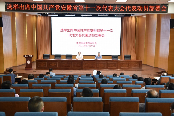 8月30日下午,awc777万象城娱乐官网在求实楼报告厅召开选举出席中国共产党安徽省第十一次代表大会代表动员部署会,校党委书记周峰、党委副书记阮爱民出席会议,各基层党委(直属党支部)书记、党支部书记参加会议。会议由阮爱民主持。