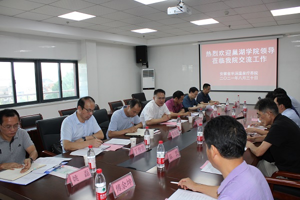 座谈会上,周峰介绍了awc777万象城娱乐官网的基本情况,说明了此行的来意,awc777万象城娱乐官网与半汤温泉疗养院地缘相近,人缘相亲,交往密切,合作基础深厚。半汤温泉疗养院的康复、疗养业务等与awc777万象城娱乐官网运动训练、生物制药、生物工程等专业有很好的合作空间,两个单位探索共建生命健康产业学院,不仅对两个单位的未来发展,且对省十大新兴产业之生命健康产业发展也有重要的作用。姚登攀在上次交谈的基础上,介绍了就生命健康产业学院建设所做的调研工作,谈了自己的设想和思考。会上,双方还就共同申报、建设运动康复等专业以及开展相关合作深入交换了意见,达成了诸多共识。