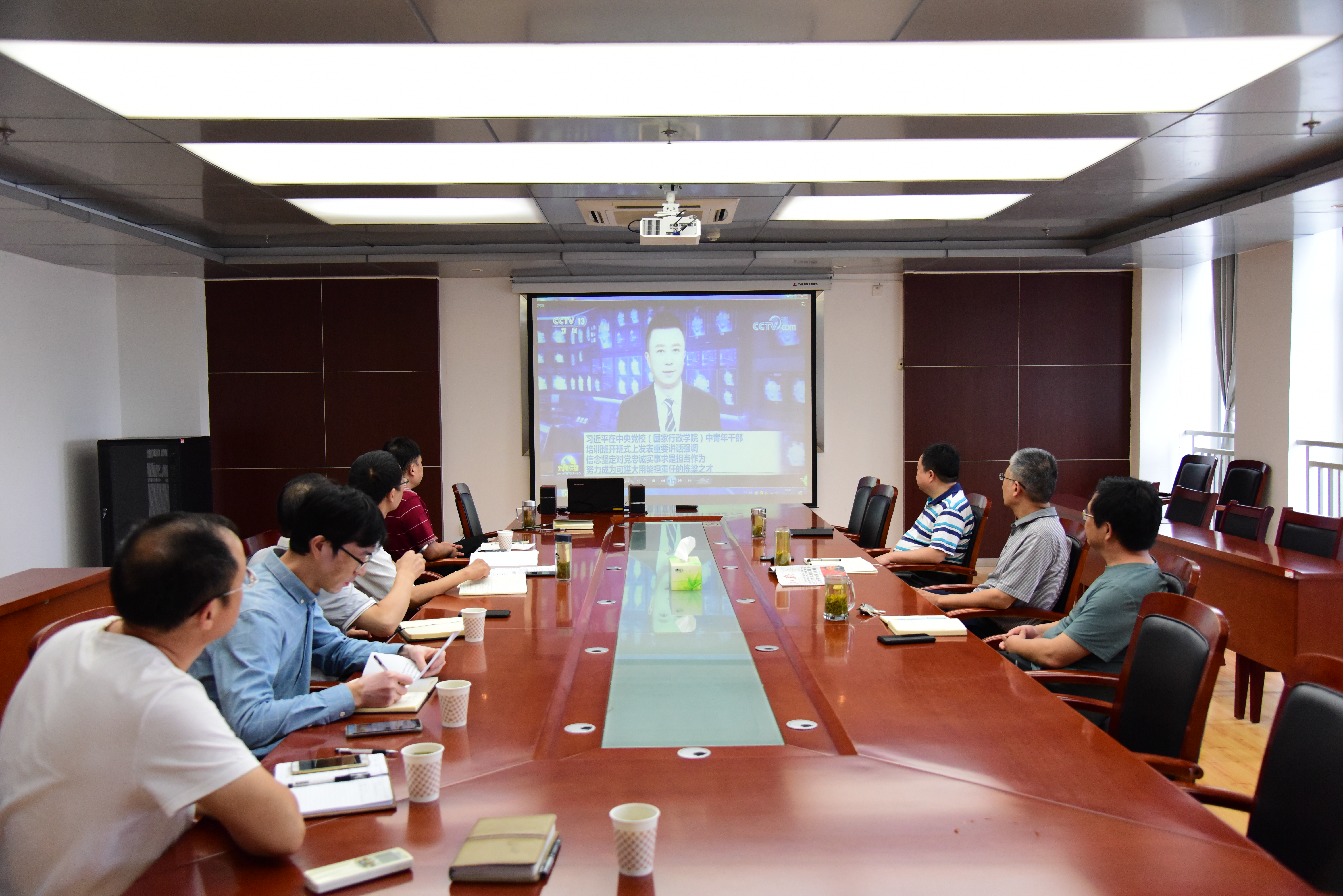 会上,大家集体观看习近平总书记在中央党校(国家行政学院)中青年干部培训班开班式上发表重要讲话的视频。