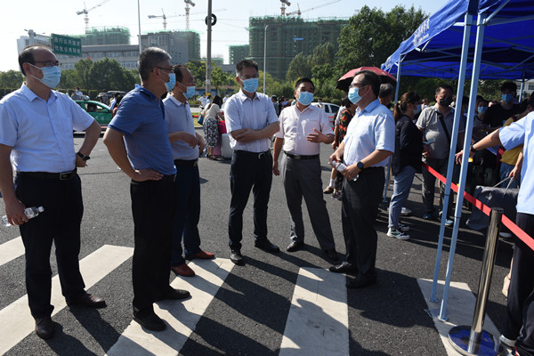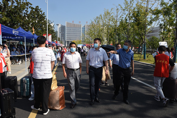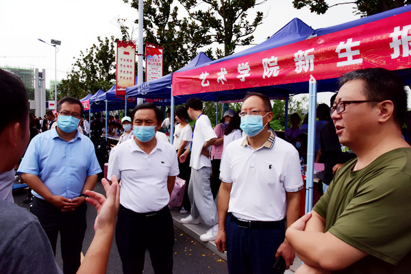 新生报到期间,校领导周峰一行走访各个迎新场地,仔细察看每一环节,与参与迎新工作的师生沟通交流,时刻关注迎新进程,了解新生报到情况,确保整个迎新工作万无一失。