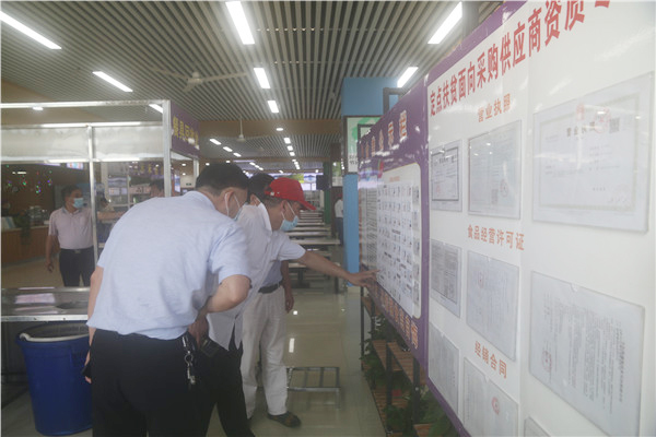 检查组一行深入各学生食堂,从前厅到后厨,地面到天花板,全方位、无死角,依次检查了学生食堂就餐大厅、售卖间、操作间、面点房、主副食库房、留样柜等重点区域,重点检查了疫情防控、清洁卫生、信息公示、样品展示、人员管理、制度执行、原材料采购、加工操作、餐具消毒、食品留样、索证索票等关键环节落实情况。期间,检查组现场复核窗口从业人员健康证,查阅原材料特别是进口冷链食品采购台账,检查米面油等大宗食品公示信息,不时与食堂就餐同学亲切交流,主动询问食堂菜品价格、质量、服务等情况,同学们普遍反映食堂暑期改造升级,人文点缀,特色凸显,品类丰富,供应充足,物美价廉,流连忘返。