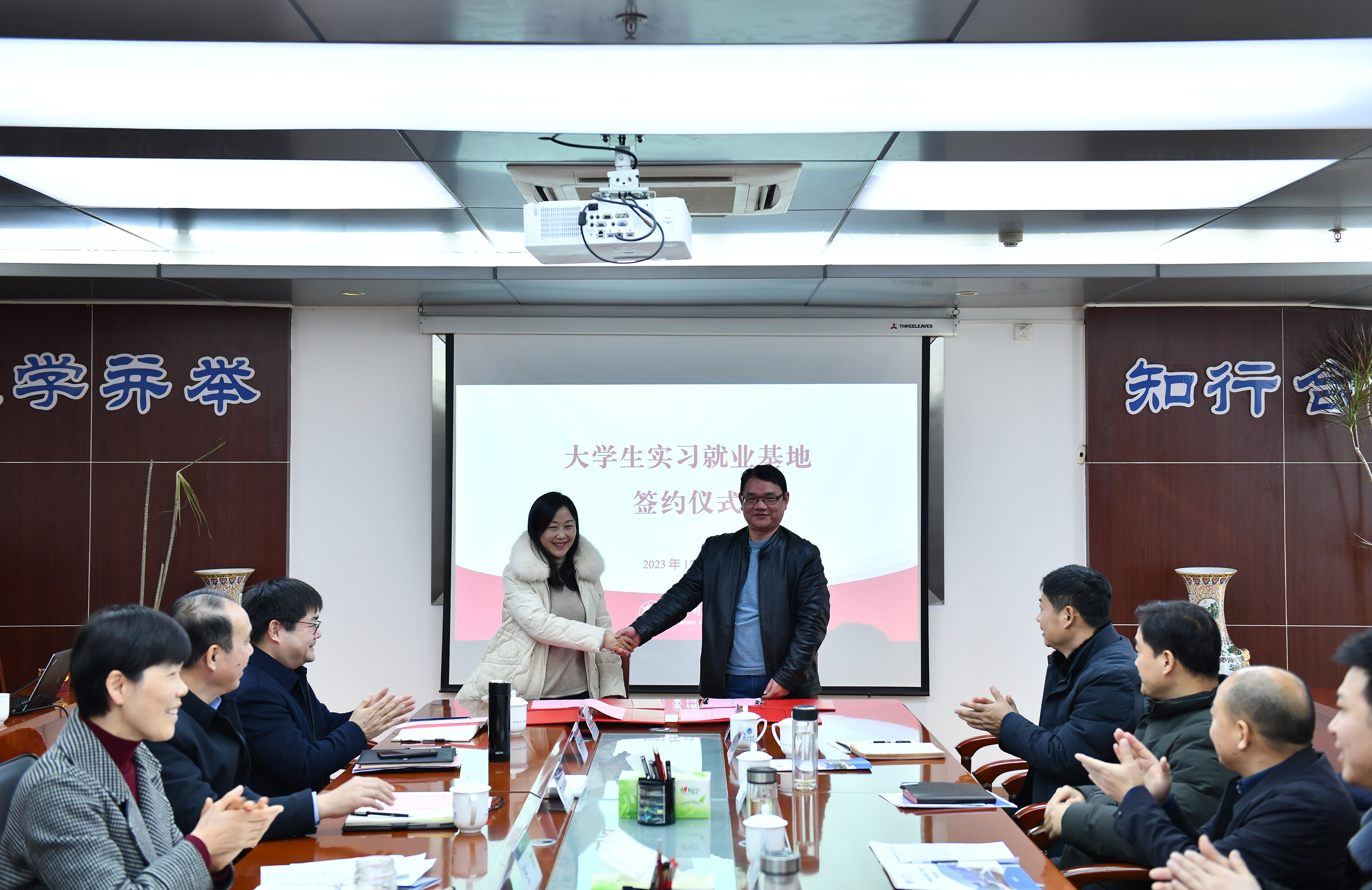 在观看了郎溪城市宣传片后,嵇文以产业为逻辑起点,聚焦新能源汽车零部件、装备制造等主导产业和光伏储能等新兴产业,详细介绍了郎溪县的地理区位、生态环境、发展机遇、人才引进政策。他表示,希望学校在郎溪建设实习实践就业创业基地,开展项目对接,构建起产学研合作交流信息平台,校地合作能取得实实在在的成果,为推动郎溪县高质量发展提供坚强的人才支撑和智力保障。