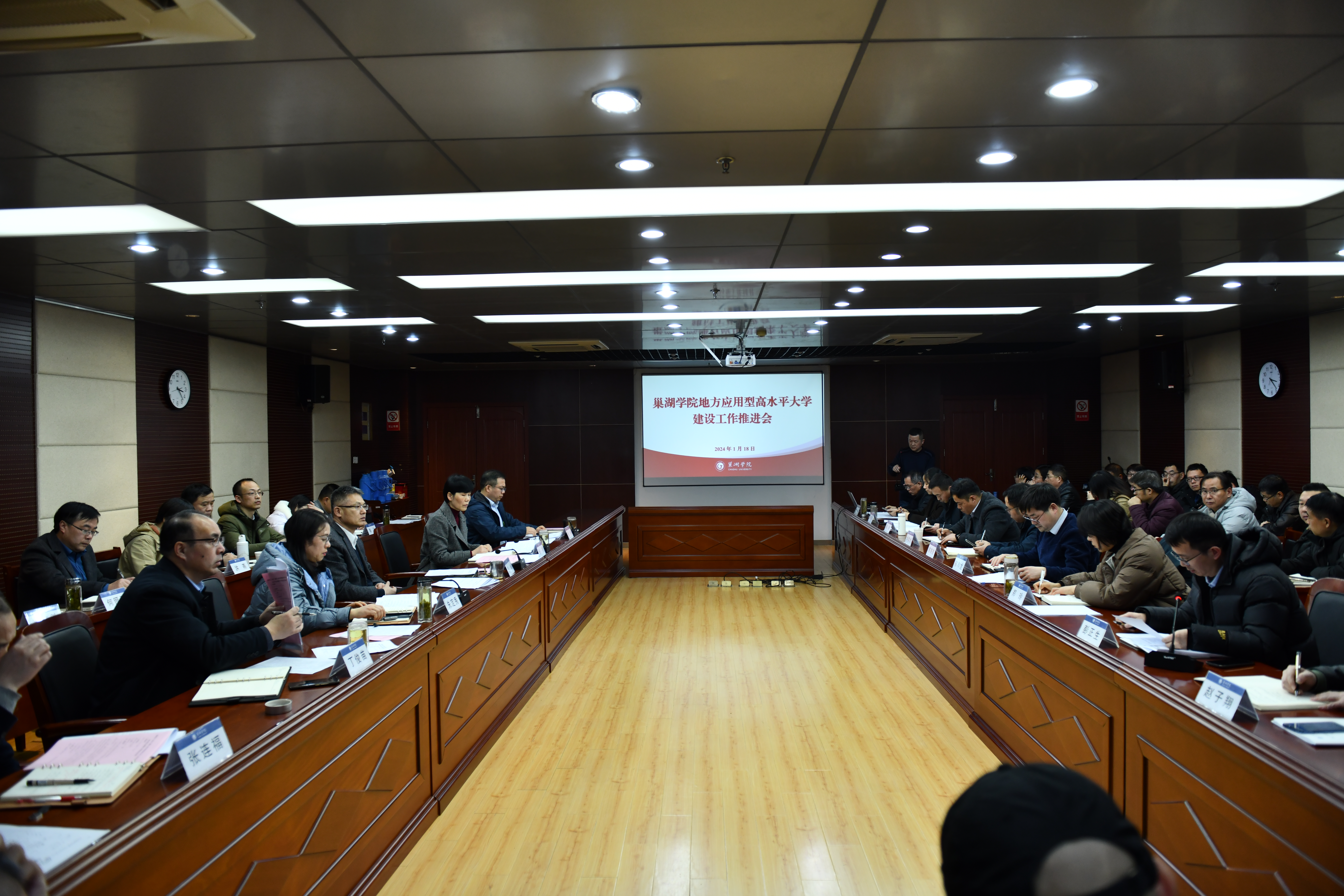 为深入推进地方应用型高水平大学建设,1月18日,学校在图书馆第二会议室召开工作推进会。校党委书记周峰,党委副书记、校长张莉,党委委员、副校长朱定秀、周祥、丁俊苗出席会议。各职能部门主要负责人,各教学学院党政主要负责人参加会议。会议由张莉主持。