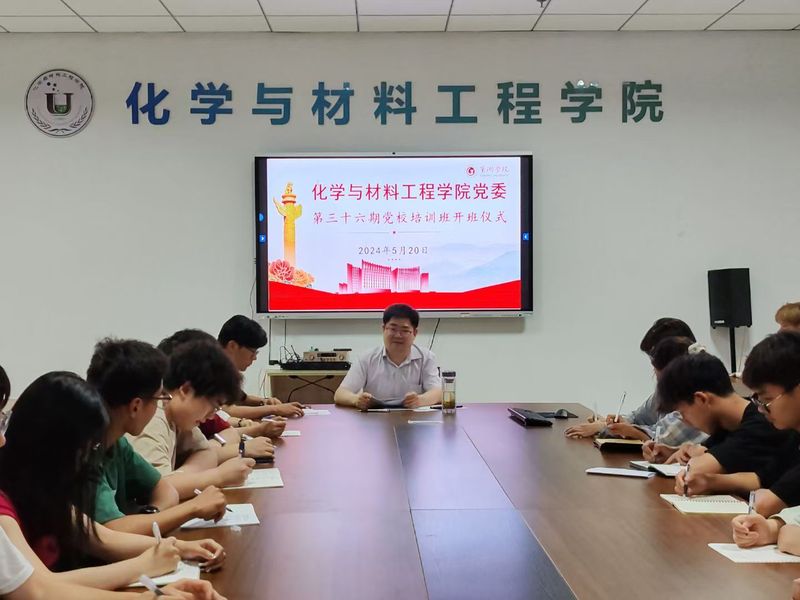 5月20日晚,化学与材料工程学院第三十六期党校开班式在学院会议室举行。学院党委书记陈和龙,党委副书记、纪委书记王巍,组织员程磊出席开班式。开班式由王巍主持,陈和龙为本期党校学员讲授第一堂党课。