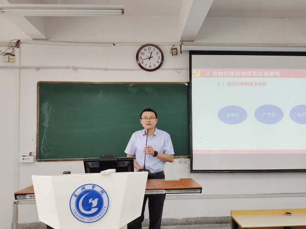 课上,陶有田表示纪律是党的生命线,纪律严明是党的光荣传统和独特优势,因此作为入党积极分子有必要学习党的纪律知识。随后,陶有田围绕“无产阶级政党纪律是铁的纪律”“党的纪律的特征”“党的纪律的基本内容”以及“党的纪律处分类型”四个方面进行详细阐述。他表示,作为入党积极分子要提升自我约束与自我管理能力,要了解和掌握校纪校规相关内容,在学习生活等各方面都要追求卓越。