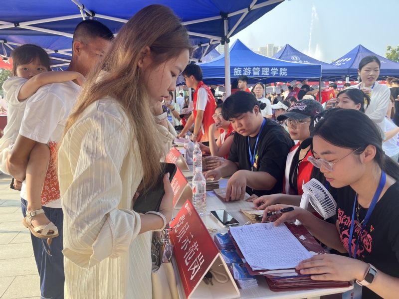 以心迎“新”,贴心服务。9月7日上午7:00,全体新生班级辅导员以及150余名迎新志愿者初迎朝阳等候新生的到来。迎新现场,志愿者们与高温烈日同行,穿梭于校园的各个角落,从校门口到报到处,再到宿舍区,为新生搬运行李、宿舍登记、答疑解惑,帮助新生安全有序完成报到。虽然天气炎热,但是志愿者们不惧烈日,全程陪伴,被汗水浸湿的红马甲生动诠释了“奉献、友爱、互助、进步”的志愿服务精神。