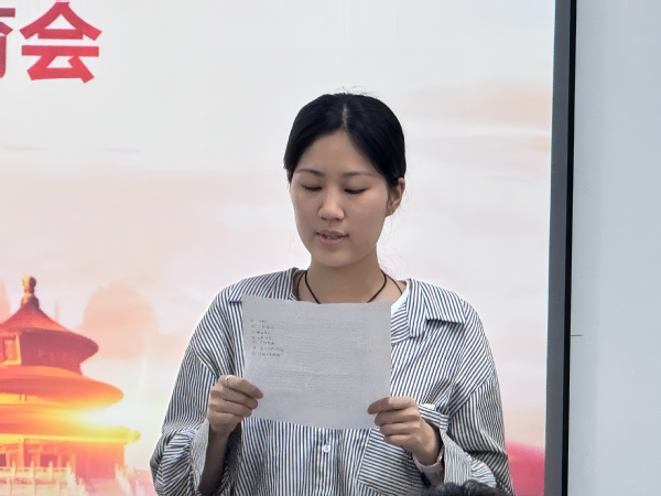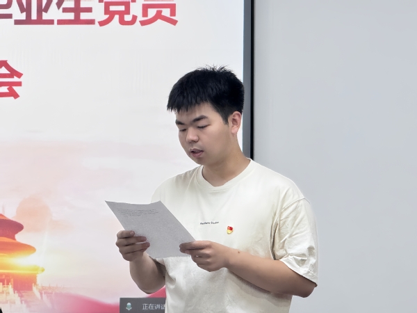 学生党员代表俞书成、李杨阳结合自身学习成长经历发表感言。两位同学表示,会始终牢记入党初心、践行党员义务,为文明离校贡献微薄力量,在今后的工作岗位继续奋斗,为党旗添彩、为母校争光。