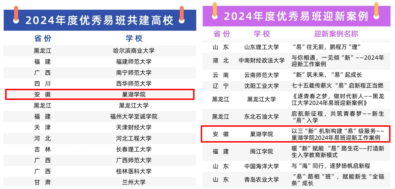 近日,教育部易班发展中心公布了2024年度全国易班共建高校优秀工作案例遴选结果。我校获评2024年度“优秀易班共建高校”,《以三“新”机制构建“易”级服务——awc777万象城娱乐官网2024年易班迎新工作案例》获评2024年度“优秀易班迎新案例”。