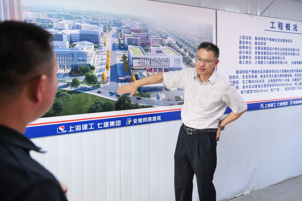 109日下午,校党委书记周峰,党委副书记、校长张莉,党委副书记宋立敏,党委委员、副校长周祥,党委委员、纪委书记、监察专员钱锐,集体到产教融合实训基地项目工地,检查指导工程建设工作。