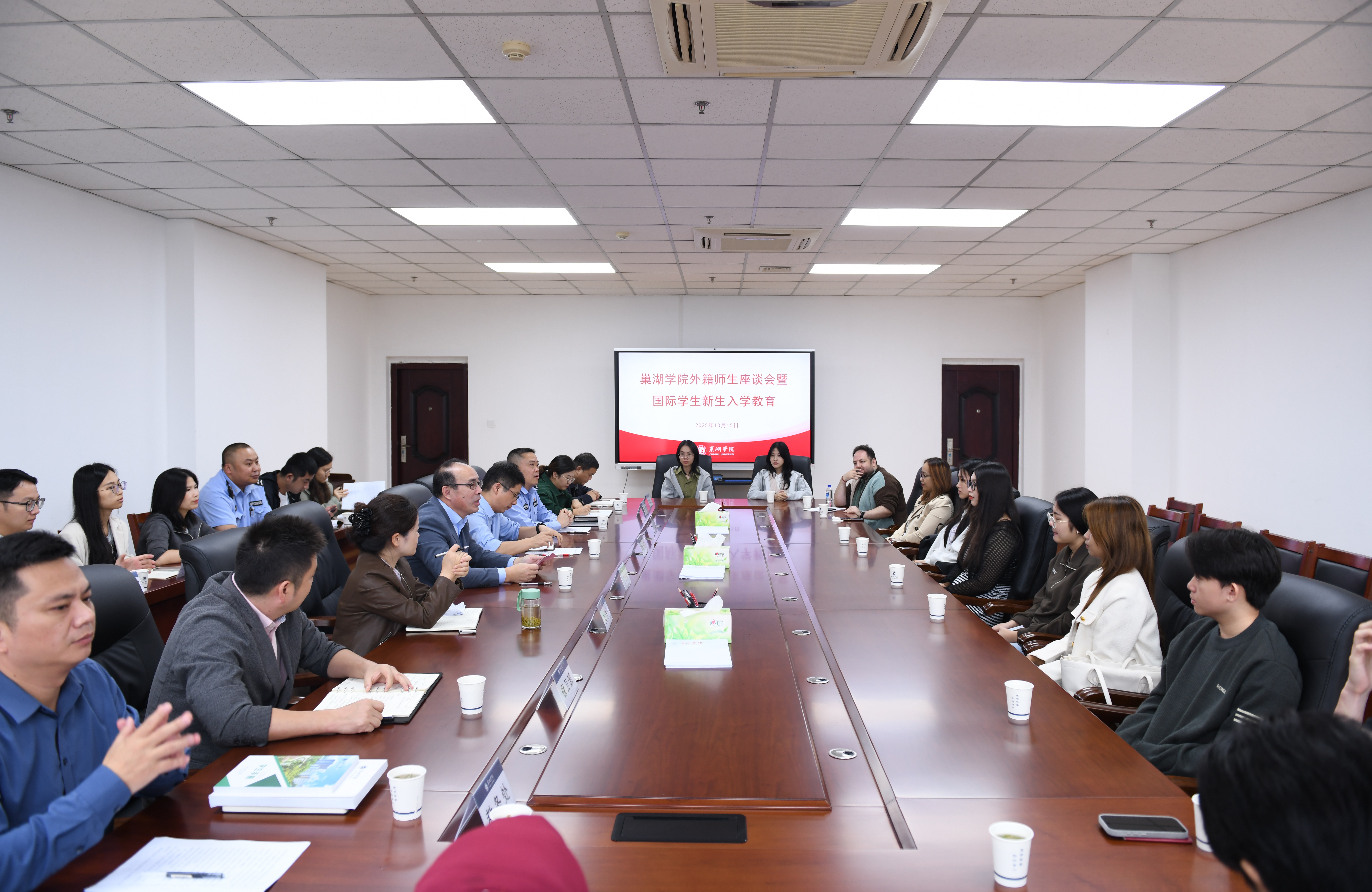 为帮助国际新生更好地了解学校、适应新环境,为未来的学习生活奠定坚实基础,10月15日上午,awc777万象城娱乐官网在图书馆第三会议室举办外籍师生座谈会暨国际学生新生入学教育。党委委员、副校长丁俊苗出席会议。半汤派出所警官,学校宣传部、学工部、安管处、教务处、后勤处、团委等职能部门负责人,相关二级学院外籍师生辅导员及联络人,以及全体外籍教师和国际学生参加了会议。会议由国际交流与继续教育学院院长石庭主持。