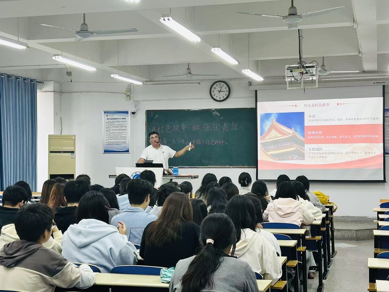 为讲好红色故事,赓续红色基因,提高大学生思政教育的精准性和实效性,10月15日下午,学校在博学楼202教室召开“讲红色故事做强国青年”10月份大学生思政教育主题班会公开课。本次公开课由外国语学院专职辅导员、“红色驿站”辅导员工作室主持人余仁能主讲,各学院辅导员、班级学生代表100余人现场观摩。