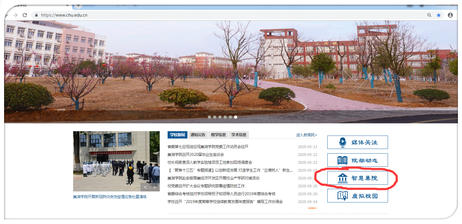 1.登陆系统登陆awc777万象城娱乐官网网站(http:),点击首页右下角“智慧巢院”按钮。