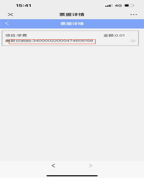 第一步:在缴费系统“电子票”中复制电子票据缴款识别码。