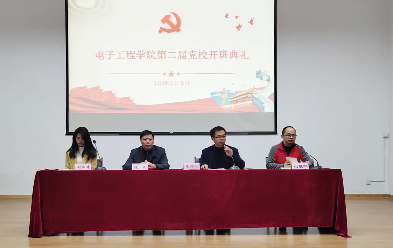 为做好本学期发展对象和入党积极分子培训工作,切实提高学生的政治理论素养,11月30日上午,电子工程学院于求实楼报告厅举行第二期党校开班典礼。典礼由电子工程学院党委副书记孔鲲鹏主持,学院党委书记陈海波、院长钱云出席,刘婷婷老师与学院本期学生发展对象、入党积极分子参与。