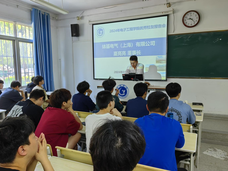 2024年5月14日上午,电子工程学院在博学楼113教室举办优秀校友报告会。本次报告会邀请了2005级电气工程及其自动化专业校友、铱基电气(上海)有限公司董事长夏亮亮主讲,报告会由学院副院长方愿捷主持,22级电气工程及其自动化(2)班全体学生与会。