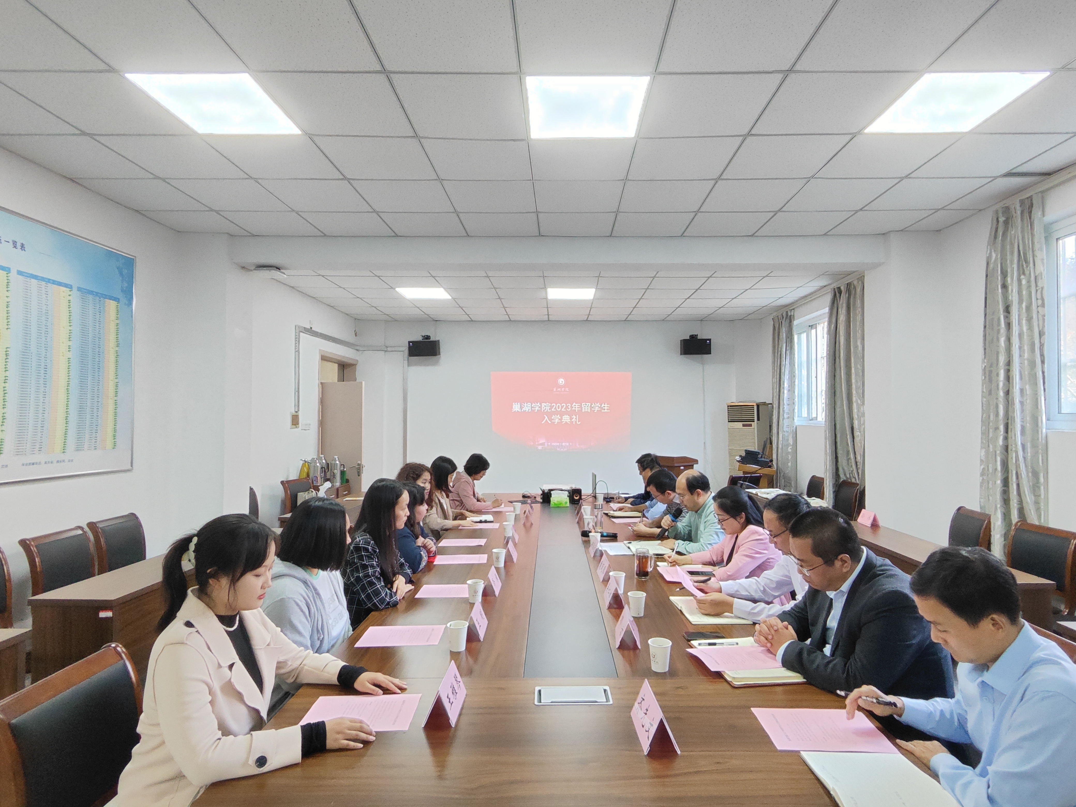 11月1日下午,awc777万象城娱乐官网2023年留学生入学典礼在敏行楼二楼文学与传媒学院会议室举行。党委学生工作部、党委保卫工作部、教务处、后勤处相关负责人,文学与传媒学院负责人,国际交流与继续教育学院负责人,文学与传媒学院、国际交流与继续教育学院相关工作人员和2023年全体留学生参加了此次活动,典礼由国际交流与继续教育学院院长褚春元主持。