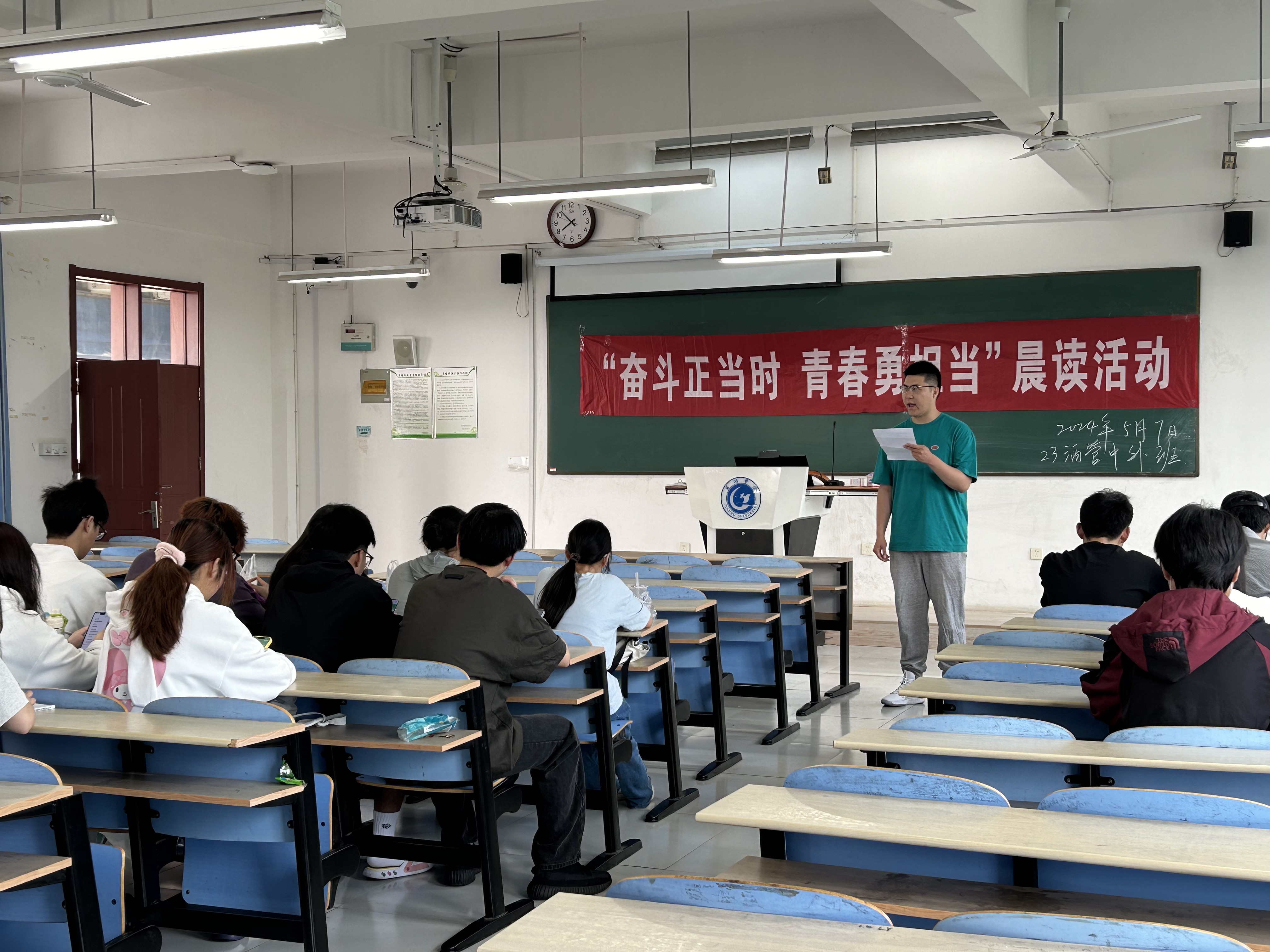 组织开展晨读活动。在辅导员徐浩然的带领下,同学们感受中华文化的独特魅力,在吟诵诗词中弘扬爱国主义精神,传承优秀传统文化。在总结活动时,徐浩然鼓励同学们将中华优秀传统文化融入自身专业学习中,在国际交流合作中,争做对外传播中华优秀文化的传承者、实践者。