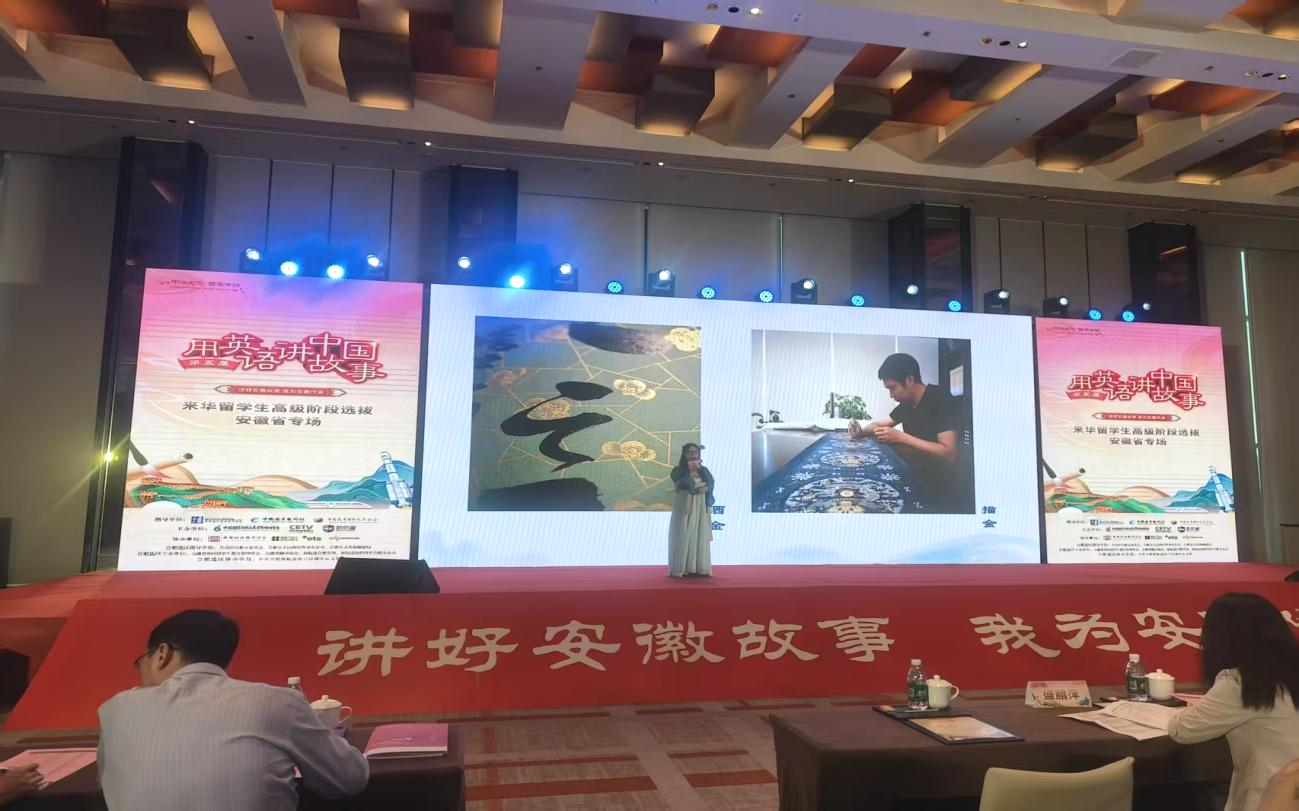 在这次大会上,来自苏丹的留学生范蕊深情地描绘了巢湖的湖光山色,从姥山岛、文峰塔到“巢湖三鲜”,从珍稀鸟类的栖息地到湿地治理的成果,展现了生态与人文的和谐共生,并以朗诵《相信未来》传递了文化共鸣和对未来的美好期望。蒙古籍留学生安蜜生动介绍了粉蜡笺的制作工艺,从染色、填粉到施蜡、砑光,详解这一融合吸水与防水特性的古法技艺,并强调巢湖非遗传承人对洒金银、描金等工艺的创新复兴。在才艺展示环节,她以脱口秀的形式幽默地解析了中蒙文化差异,生动地展现了她的跨文化理解力。老挝籍留学生黄阳则聚焦于华夏人文始祖有巢氏,通过“构木为巢”的智慧和“集叶为衣”的创举,阐释了有巢氏对人类文明的奠基意义,并以一曲中文歌曲《童话》传递了友好情谊。