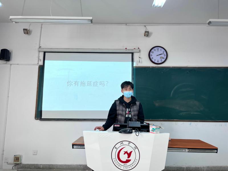 首先,储岚霖简单介绍活动流程,并提出党员同志应积极结合专业特色探索形式丰富、内容扎实的主题党日等一系列主题活动。接着,由学生党员李梦阳向大家分享本次主题“你有拖延症吗”,他分别从拖延症的产生、拖延症的表现、拖延症的解决方法三个方面演讲。他表示事实上大部分人都有拖延症,每个人大脑里边都有两个决策系统,但是在拖延症患者的大脑里,都是想着及时行乐。这种情况下,当一件事发生,我们往往想的是现在不是干活的时候。随后,其他学生党员也分享了对此次主题的感悟,拖延是一个人跟自身如何相处出现了一些问题,拖延症患者只对简单、开心两件事情感兴趣。最后,储岚霖对此次沙龙活动进行总结,她表示在我们上大学的时候哪怕是工作期间,经常会把作业或者任务留在最后一刻,甚至是最后一个晚上通宵把它完成。对待拖延症真正的方法就是:开始给自己设一个最终日期,盯着日历,盯着钟表,好好盘算如何去做好这件事情。