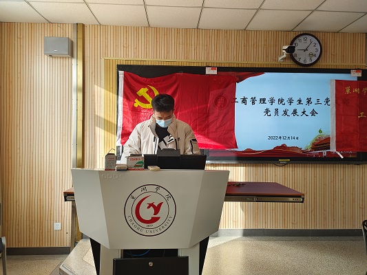 为发挥党员的先锋模范作用,为支部增添新鲜血液,工商管理学院学生第三党支部于12月14日上午在博学楼516教室召开党员发展大会,会议进行了支部新党员发展决议。会议由支部书记刘国主持,支部成员参加本次会议。